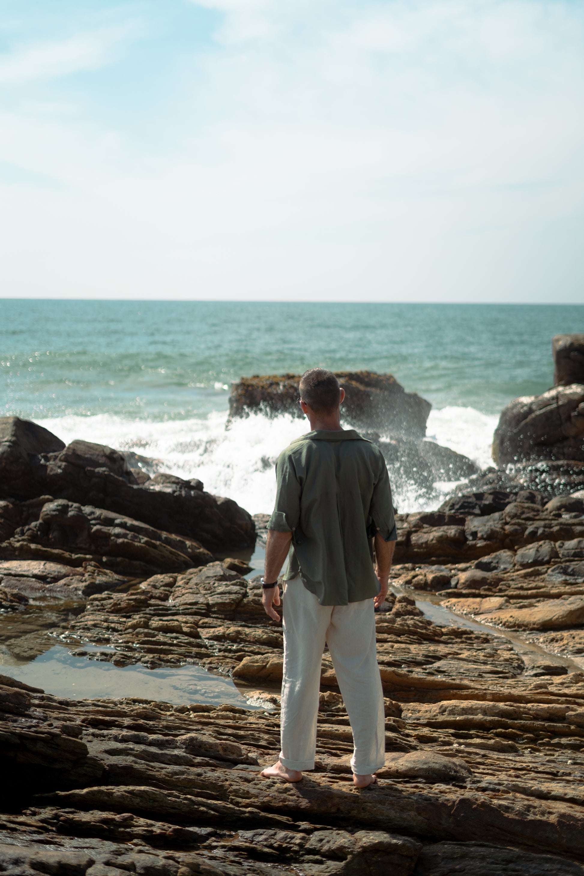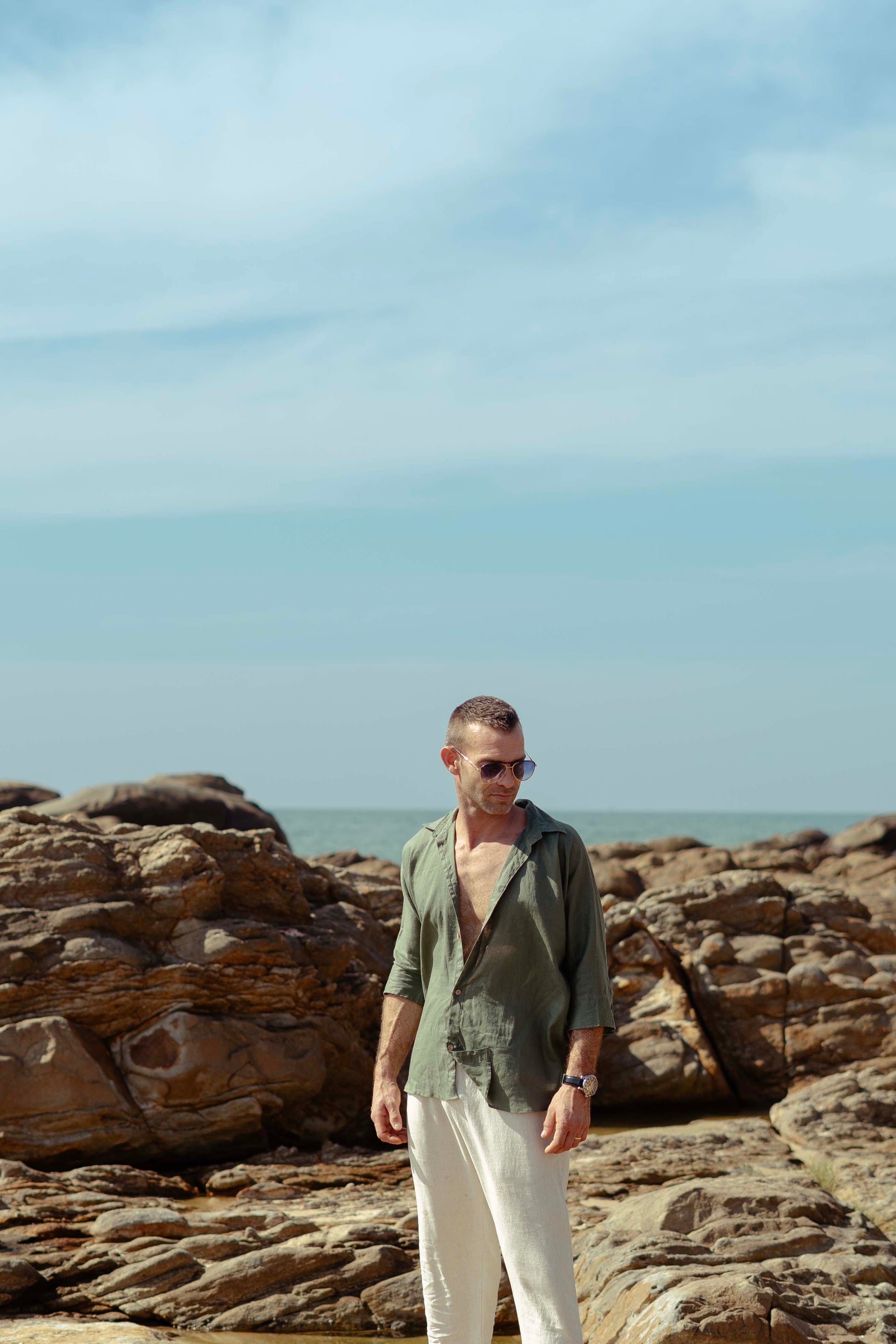 The Angelo shirt has a unique cut for the charismatic, modern and elegant man. The linen will give you the assurance of a breathable, natural and fluid material in all your moves. With no shoulder seams, it fits all sizes from S to L.