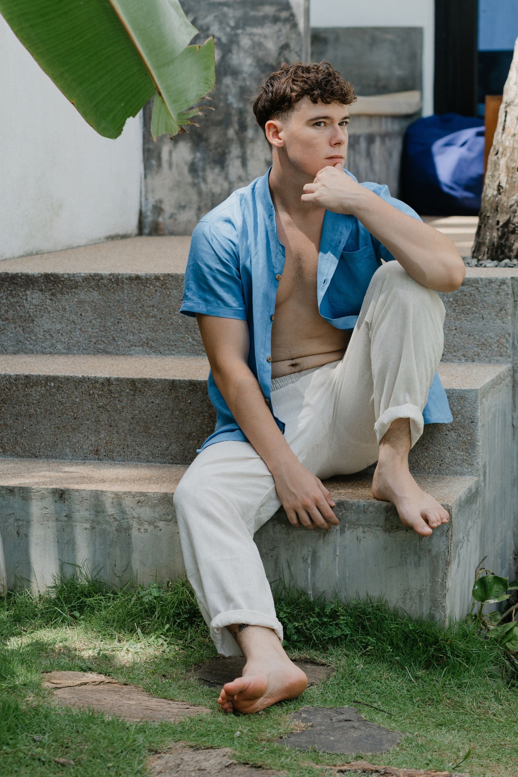 Axel shirt has been designed with a blend of Chinese and military collars, for a charismatic, elegant look. The cut is loose-fitting and the material is pleasant against the skin, in breathable, lightweight natural linen. M to XXL