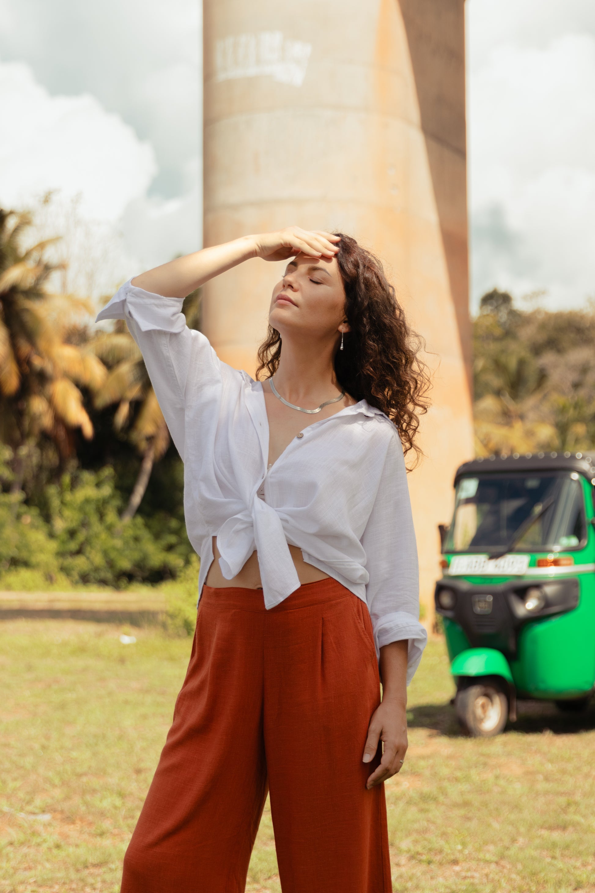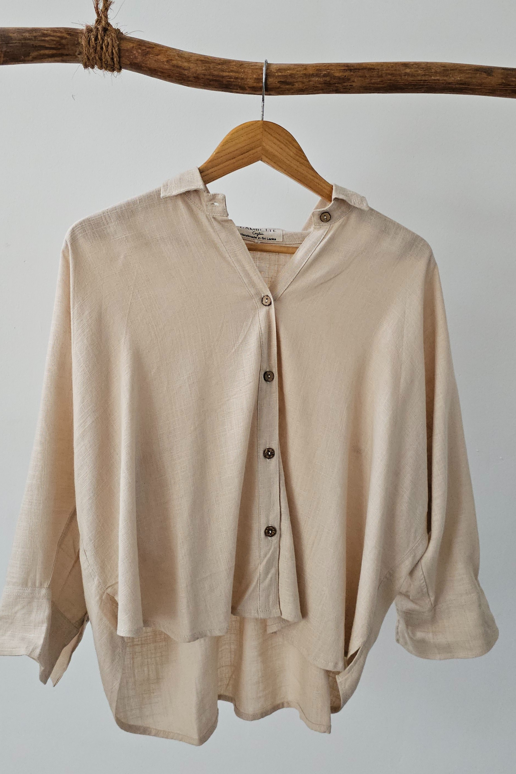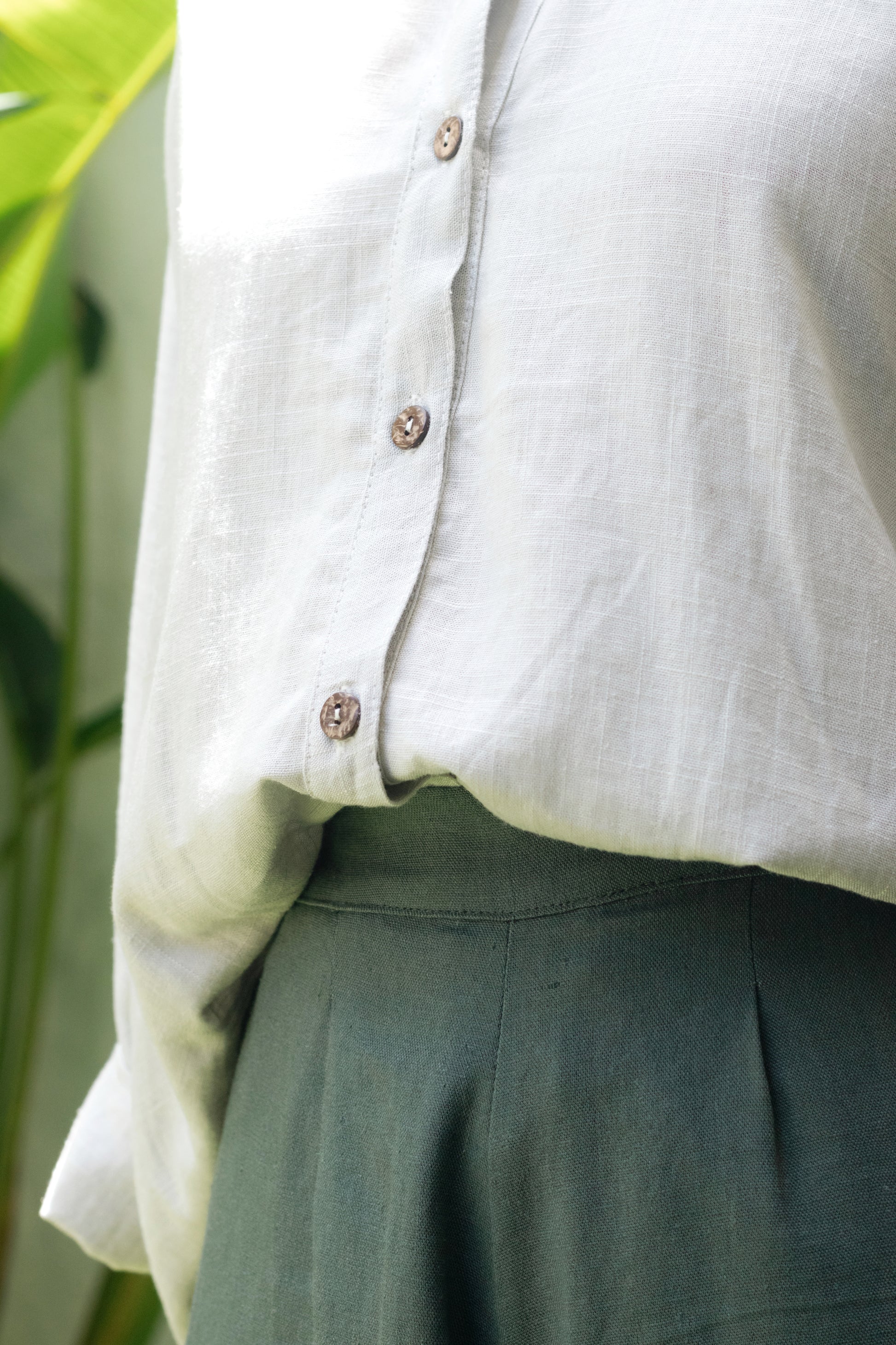 The Suhasna shirt is surely the most classic but also the most elegant, for work or for going out, tied above the waist, day or night, it will follow you wherever you go. 3/4 sleeves, coconut buttons, lightweight and soft blend linen.
