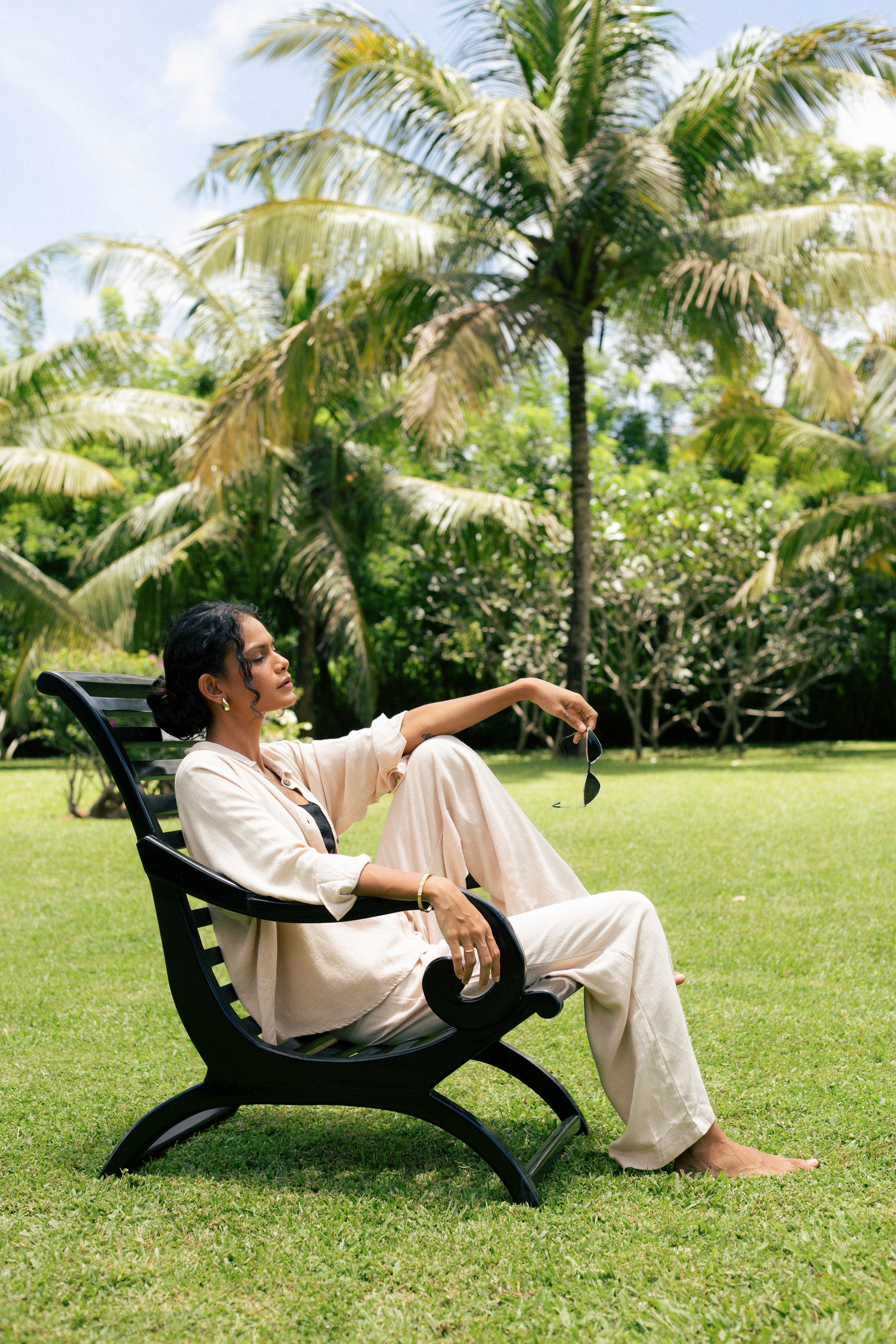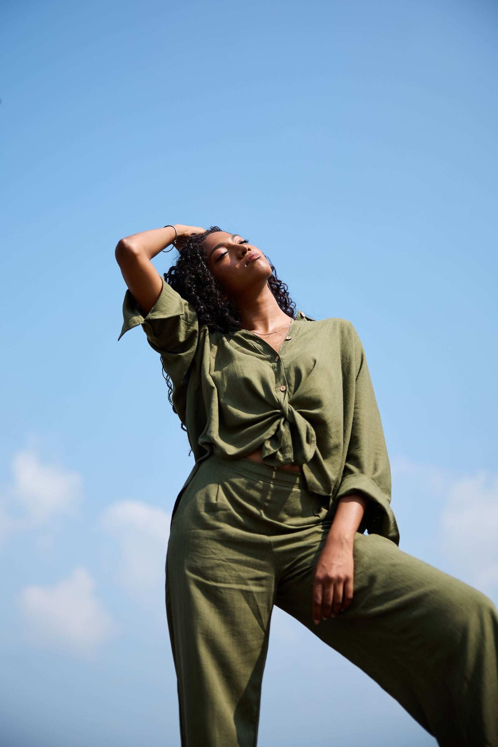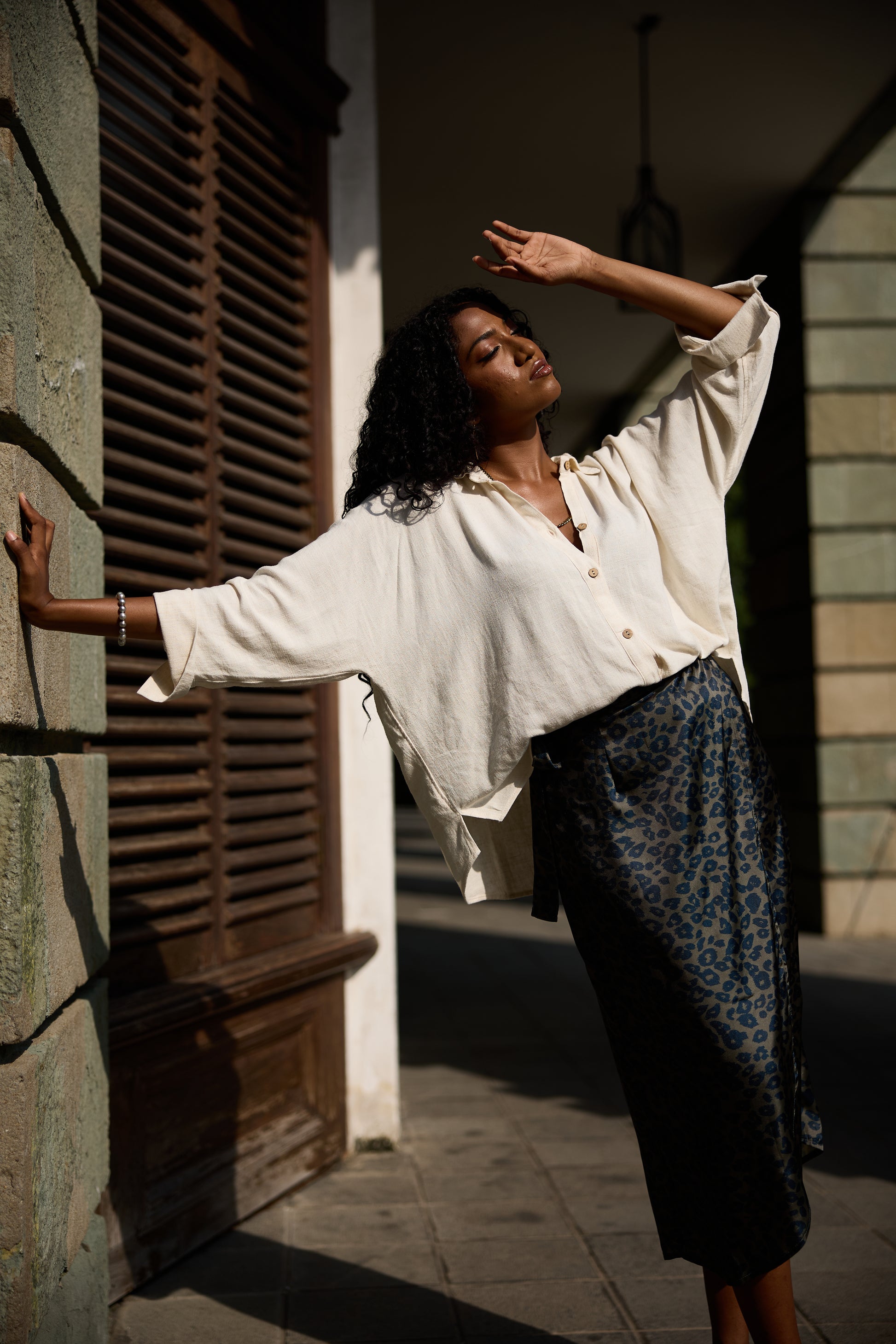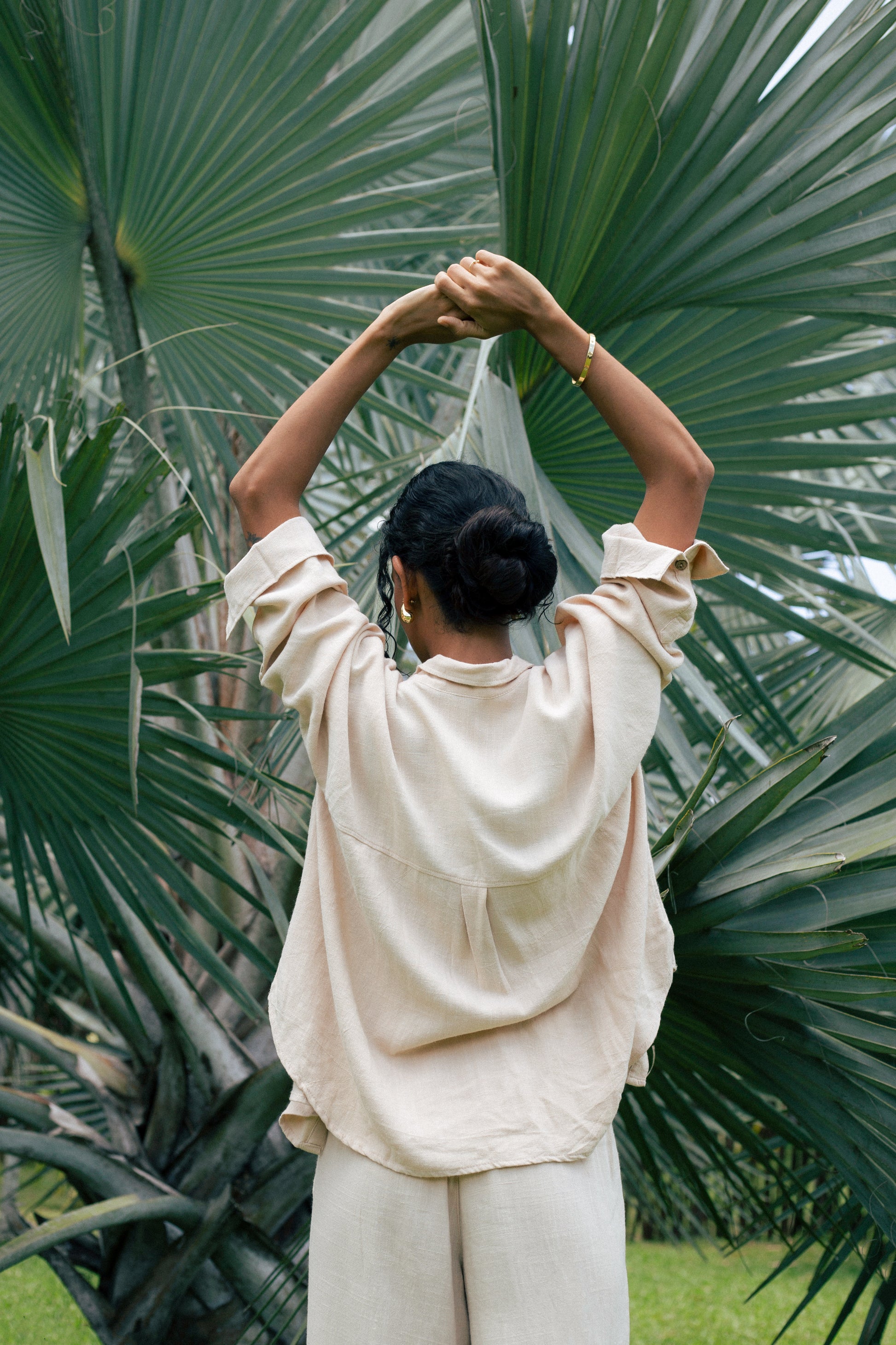 The Suhasna shirt is surely the most classic but also the most elegant, for work or for going out, tied above the waist, day or night, it will follow you wherever you go. 3/4 sleeves, coconut buttons, lightweight and soft blend linen.